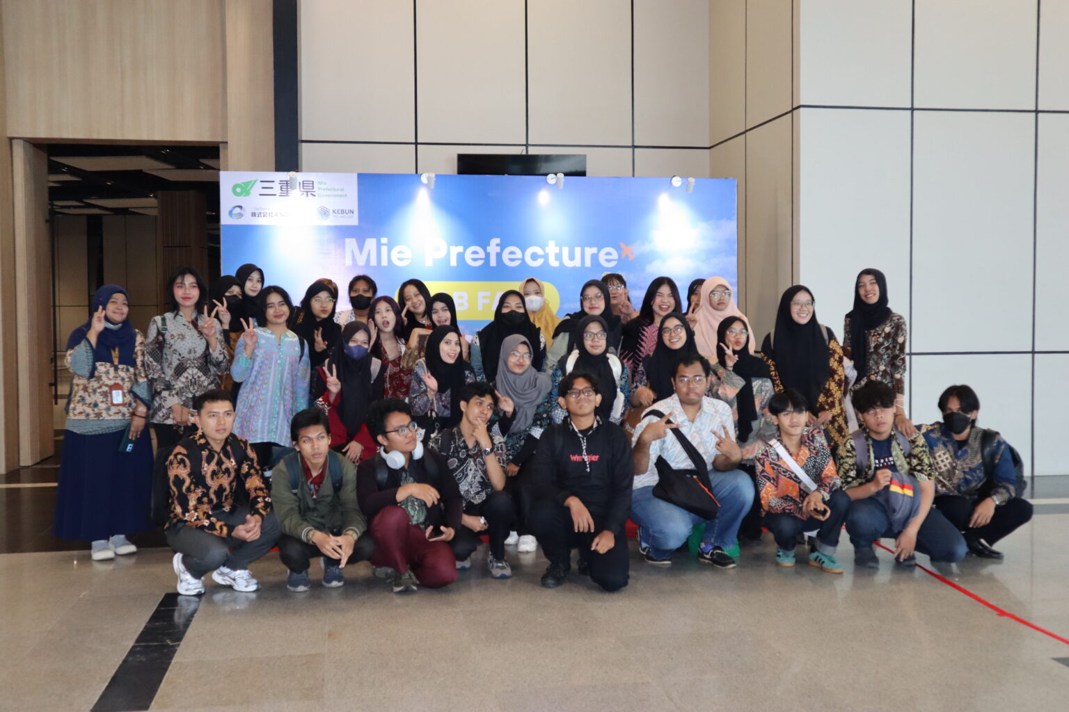 本イベントは、三重県内企業への就職に関心を持つ高度人材に該当する大卒学生を対象とし、合同就職説明会(JOB FAIR)として実施しました。現地での運営は弊社が担当し、1日目はインドネシア大学、2日目はジャカルタ市内スメスココンベンションホールにて開催いたしました。