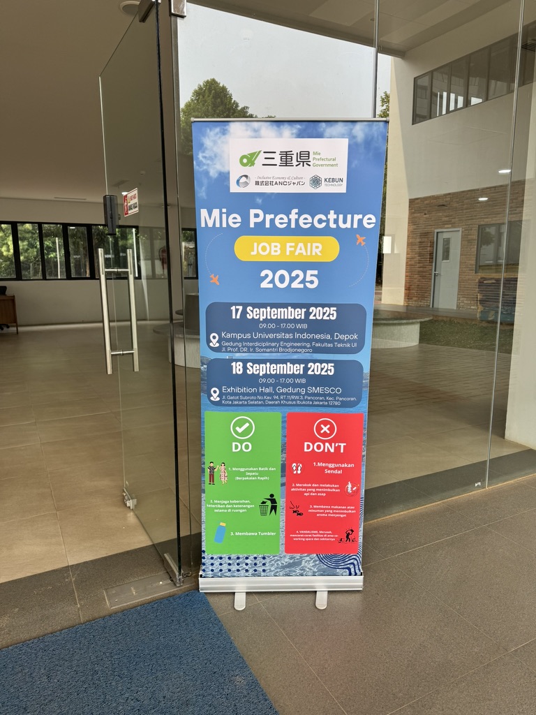 2025年9月17日・18日、三重県主催による「三重県外国人材確保支援事業 インドネシアJOB FAIR」を、インドネシア国立インドネシア大学およびスメスココンベンションホール(ジャカルタ市内)にて開催いたしました。